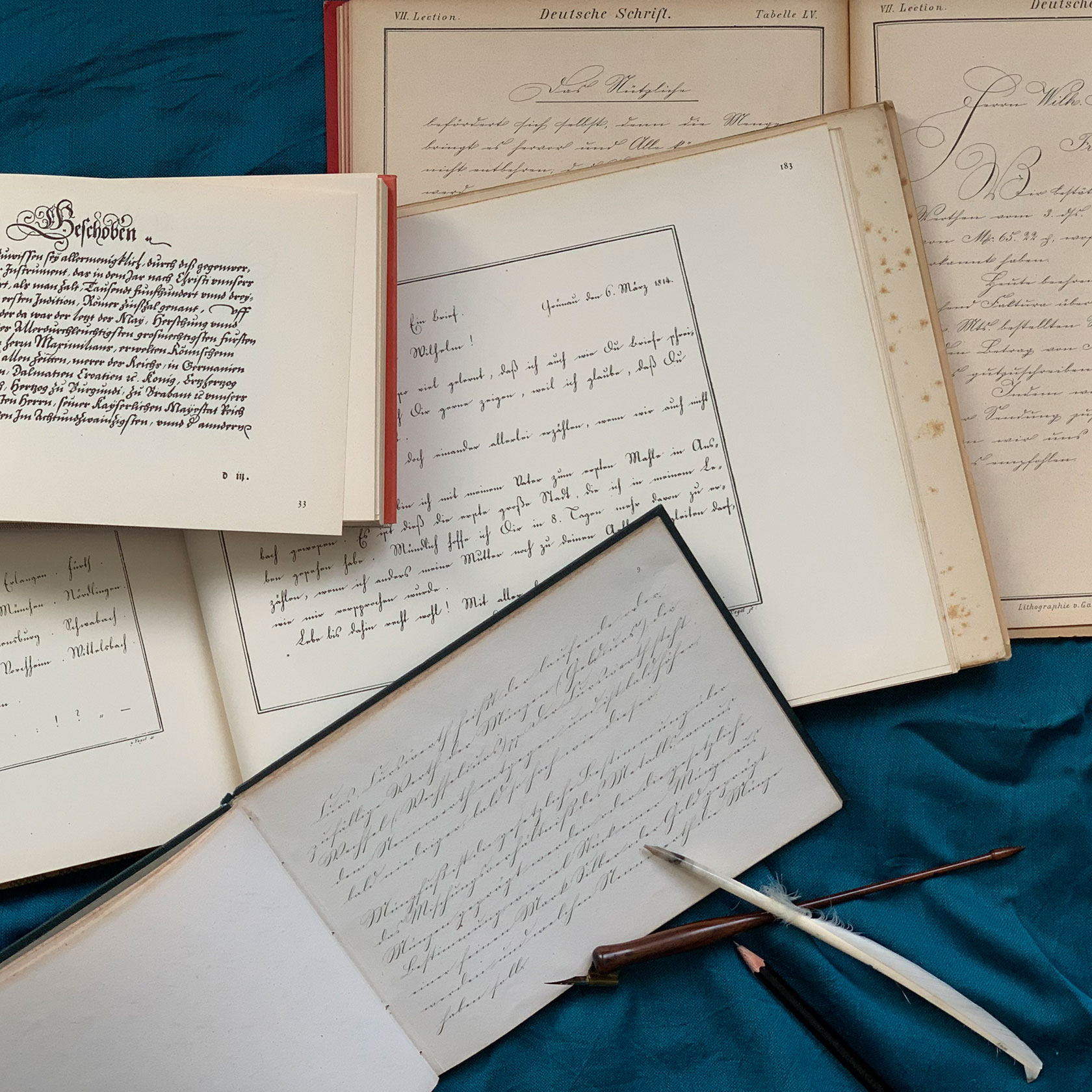 Nach einem kurzen Überblick über die Evolution der Kurrent lernst Du meine persönliche, kalligrafische Kurrent-Interpretation: Ein Destillat aus unterschiedlichen Vorlagen und Epochen. Für viele, gerade für uns ungewohnte Buchstaben werde ich je eine Alternative zeigen, die historisch »originaler« ist, und eine behutsam modernisierte, die für bessere Lesbarkeit sorgt. Zum Weitermachen bekommst Du ein Handout, Alphabetvorlagen, Rasterblätter sowie Links zu historischen Schreibmeisterbüchern.
